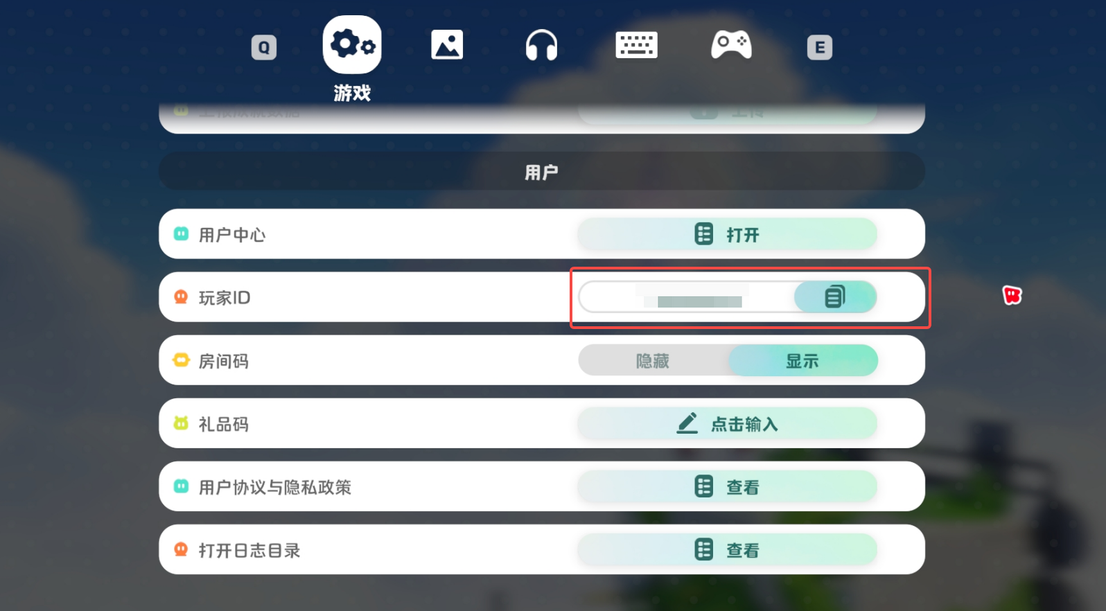 打开泡姆泡姆游戏后,在主界面点击“设置→游戏”在玩家ID处即可查看